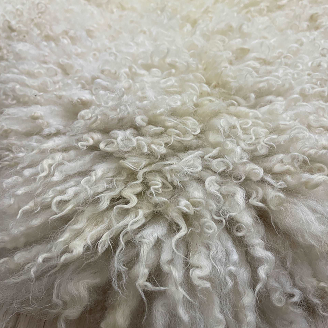 * natural, undyed curly sheepskin