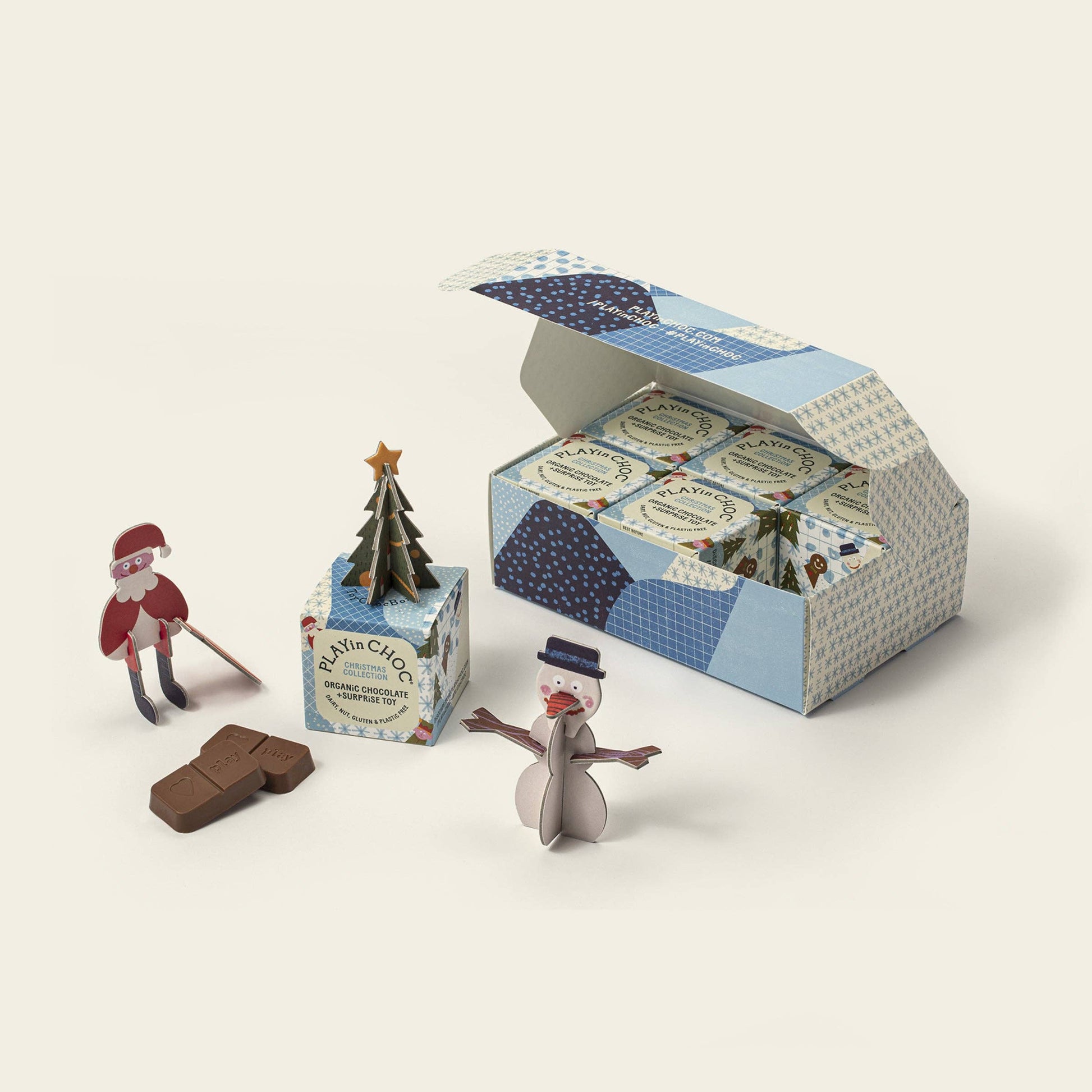 Spread cheer throughout the festive season with this set of all six PLAYin CHOC® boxes from the Christmas collection. Ideal stocking fillers, alternative Christmas crackers or for your last-minute present stash, these collectable, ethical toys double up as super-cute decorations too! Includes a snowman, a cheeky elf, a friendly ginger-bread figure, a sweet tree, an adorable reindeer and, of course, Father Christmas himself. With a great taste award.
